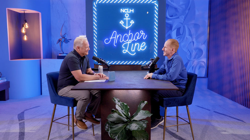To achieve this, we designed and built the Anchorline Podcast set, traveling to Miami a few days ahead of the first recording to bring our vision to life. The result was an immediate success. Inspired by the impact of the initial episodes, the executive team set their sights even higher—asking if we could take the production onboard one of their ships.